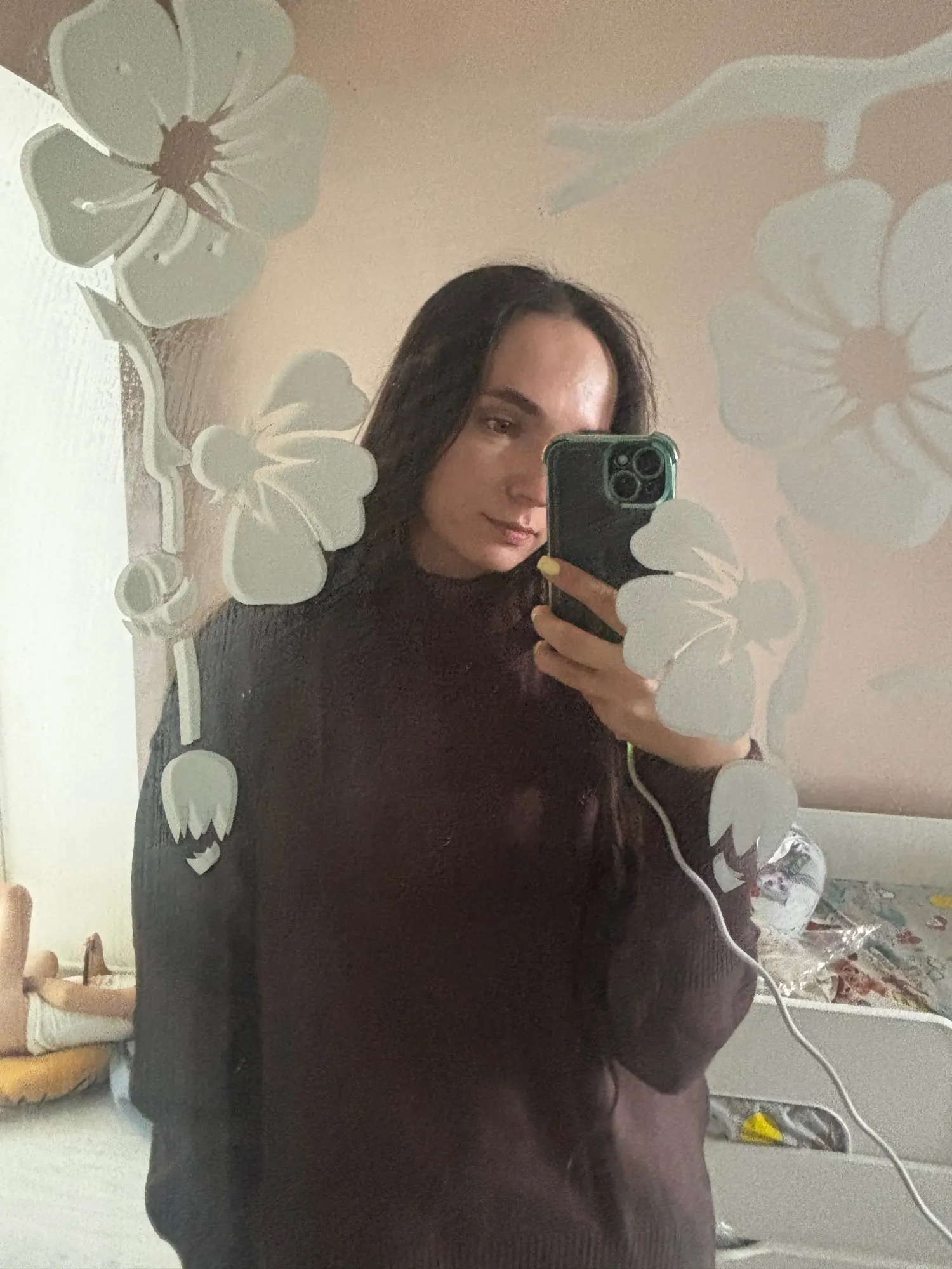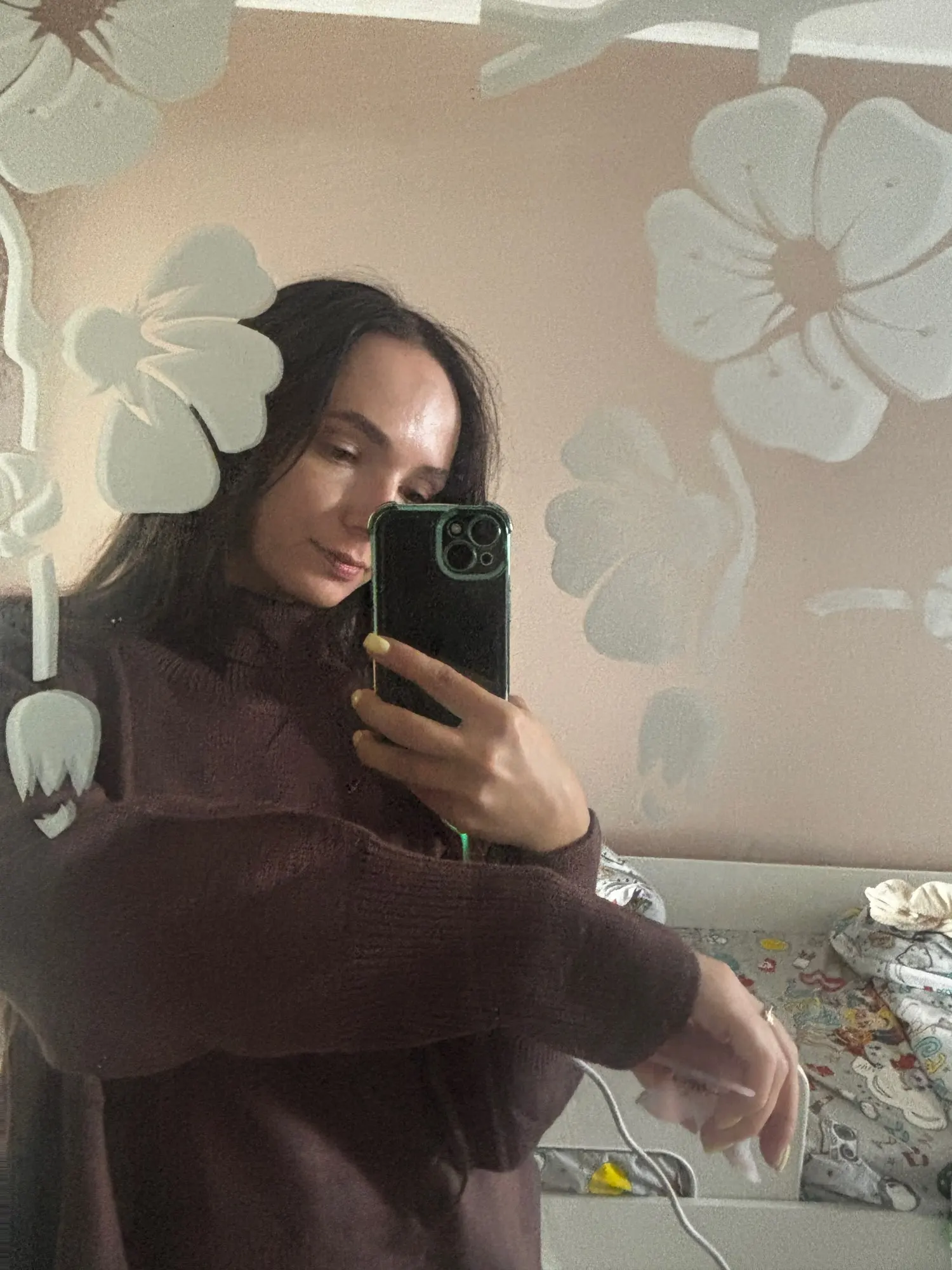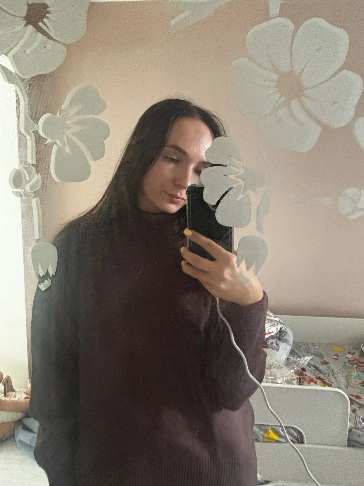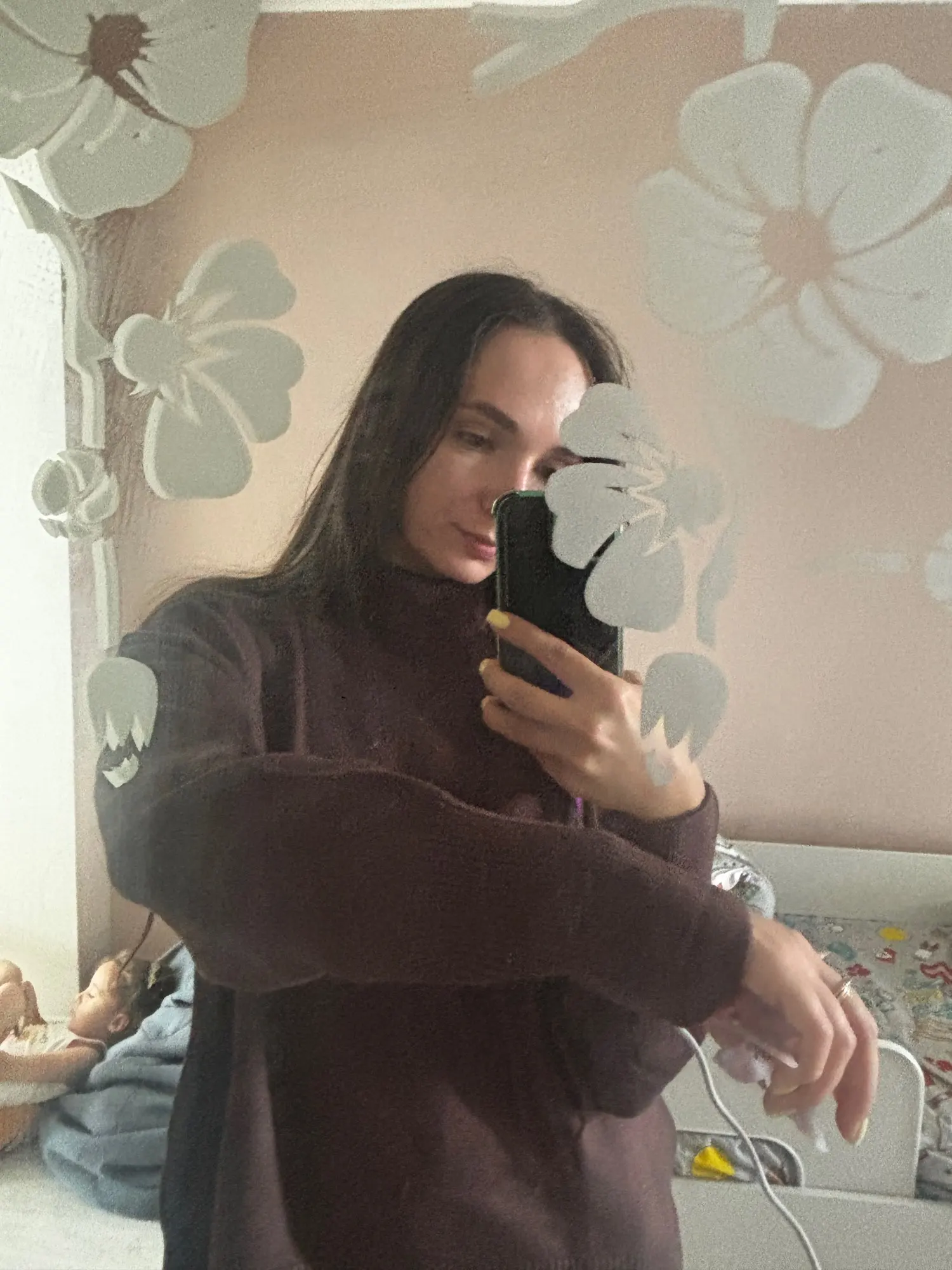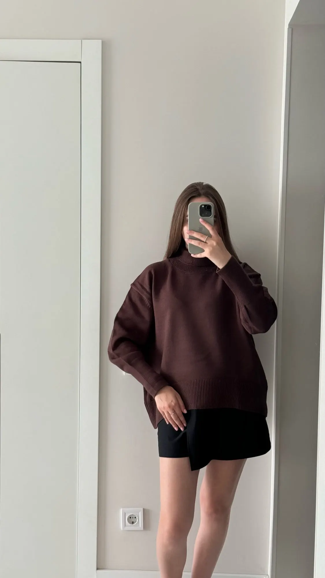 J'ai vraiment aimé le pull ! La couleur est un chocolat riche, il a l'air élégant et luxueux. Le matériau est agréable au toucher et garde bien sa forme. Mes mesures sont 78-64-94 cm, hauteur 165 cm. Le pull tombe de manière ample, exactement comme je le voulais. La longueur est idéale pour les pantalons et les jupes. Livraison à Kiev en 2 semaines. Je le recommande !