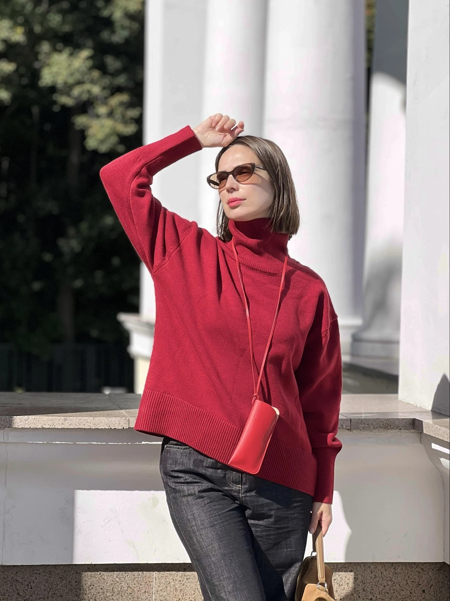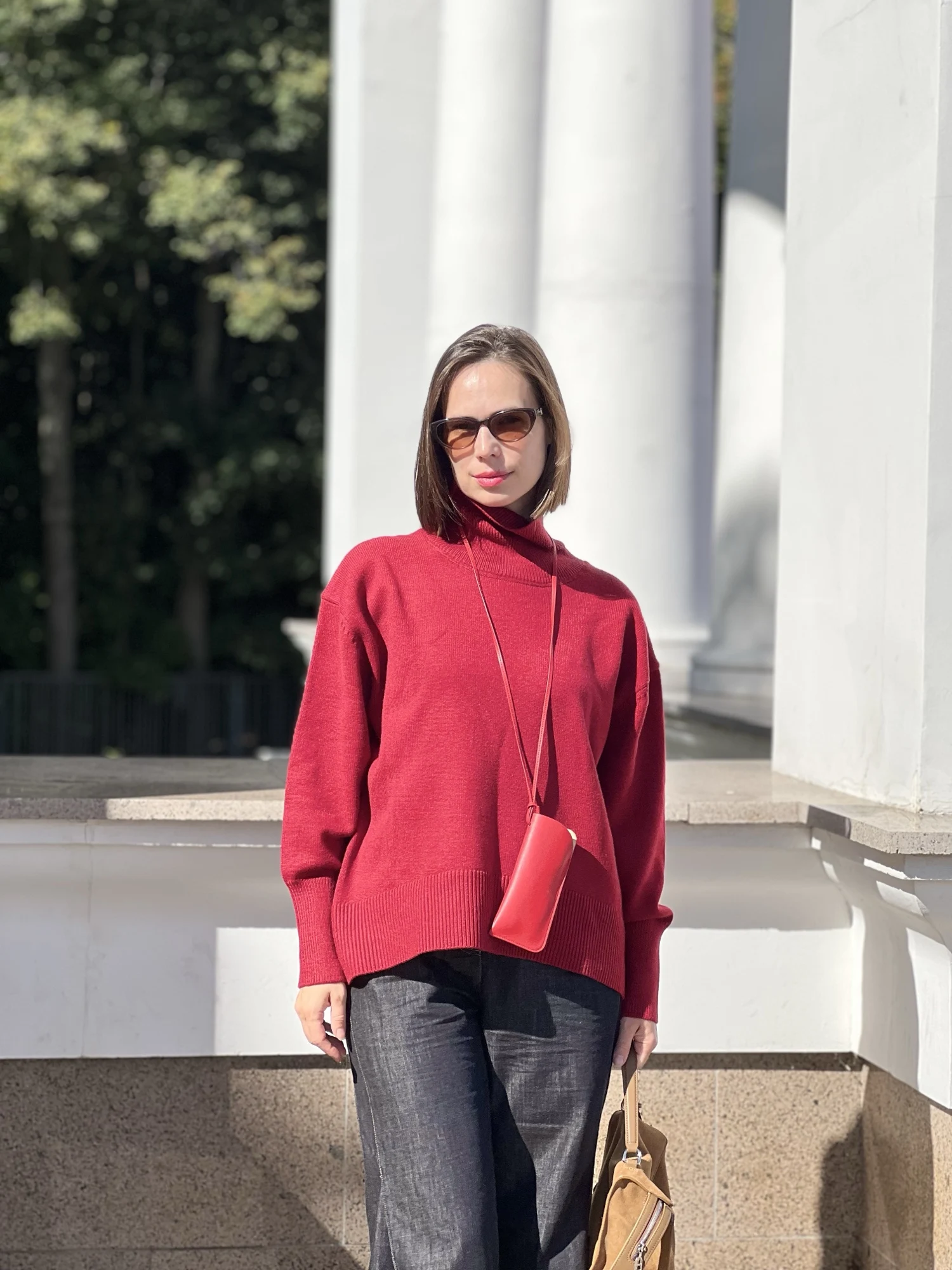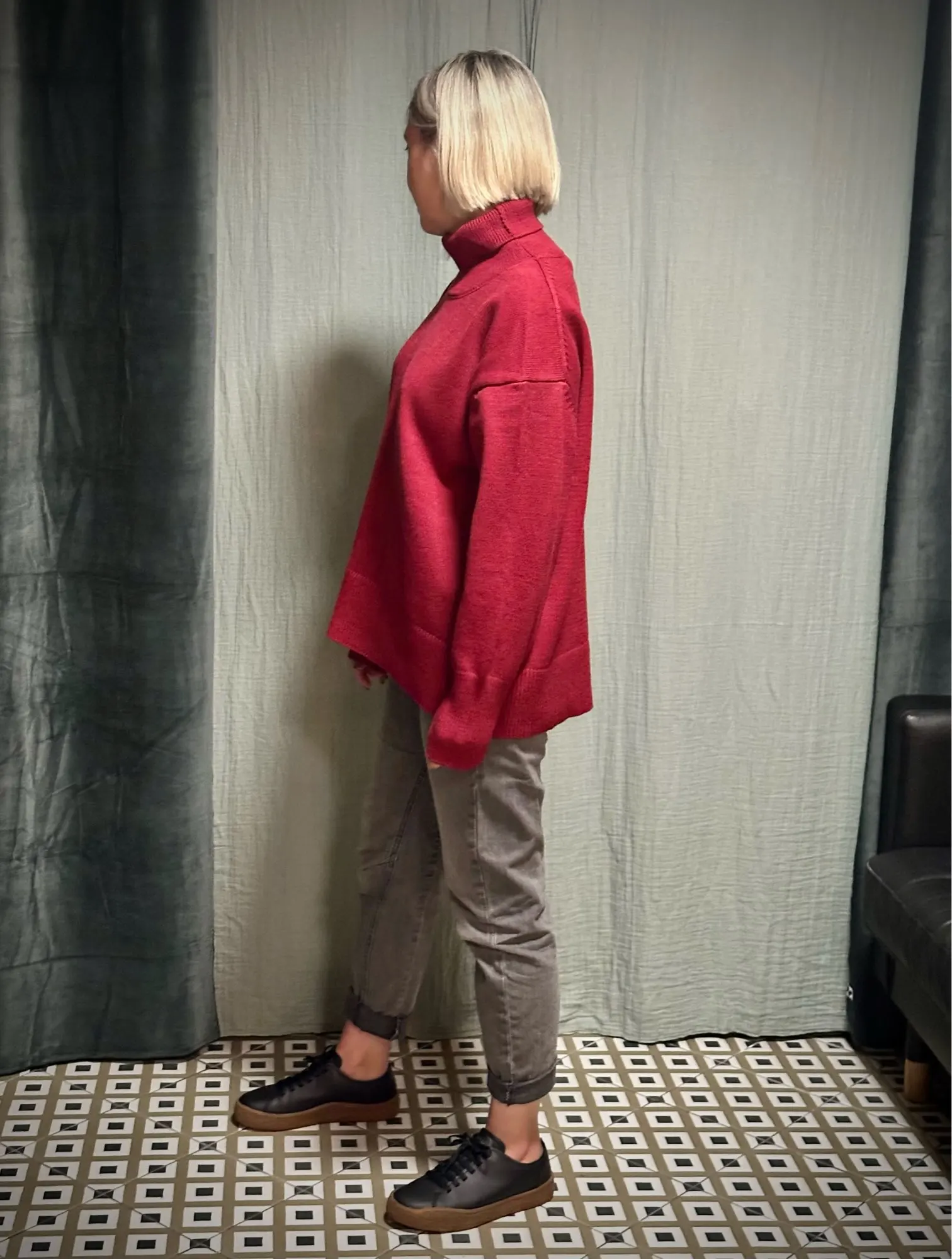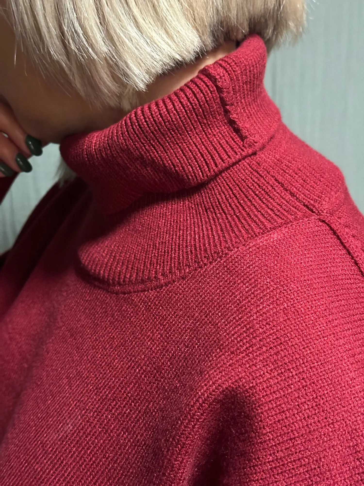 Un pull en viscose commandé dans une magnifique couleur bordeaux. Le fil est lisse, dense et agréable au toucher. Le col est haut et peut être abaissé. Convient bien pour une hauteur de 167 cm selon les proportions de longueur et de largeur du produit.